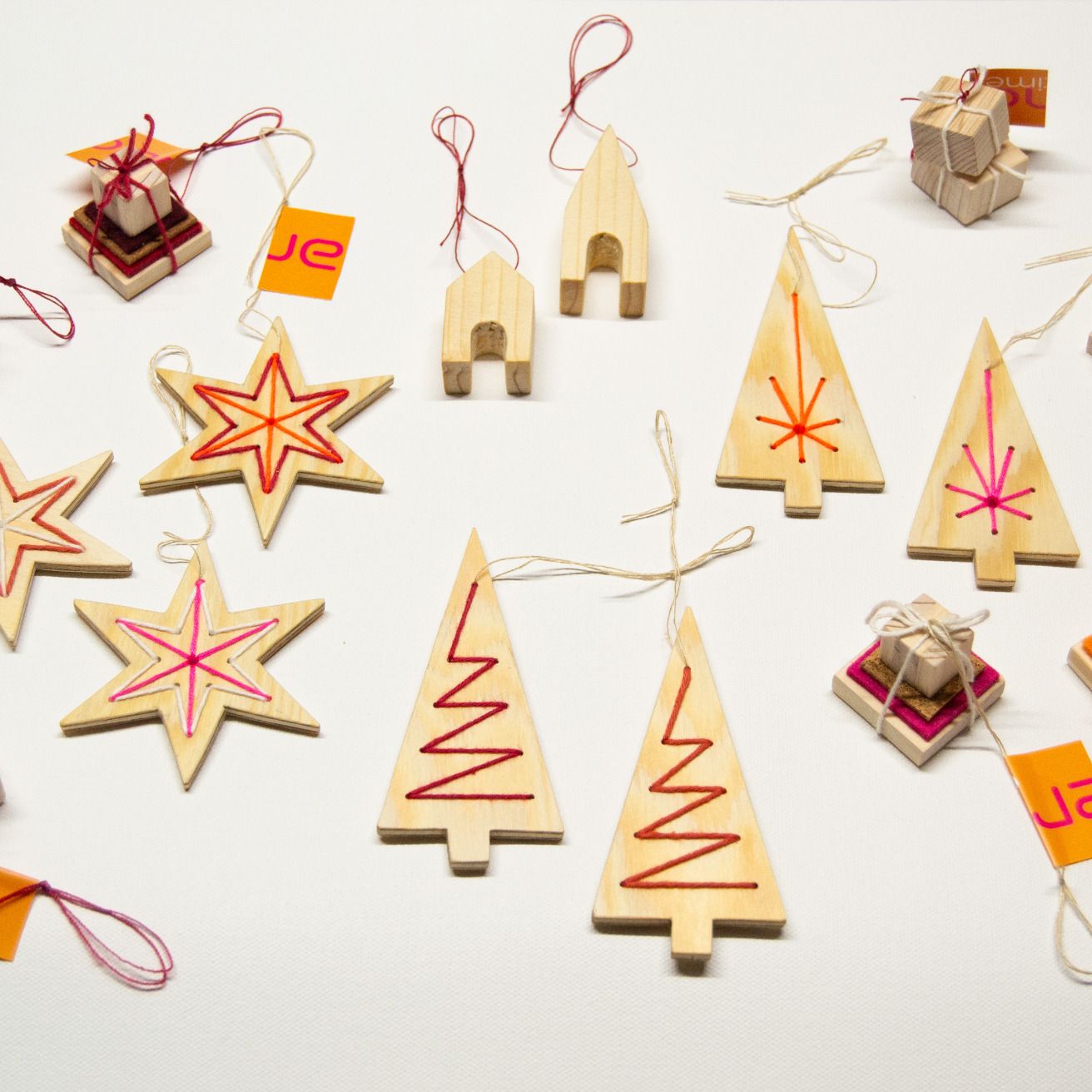 Baumschmuck und Teelichthalter aus Holz, Filz und Kork